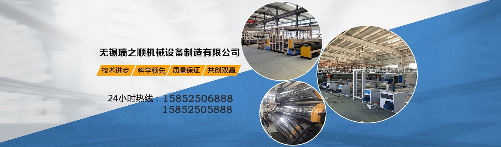 無錫瑞之順機械設備制造有限公司是一家集研發、設計、制造、銷售、服務于一體的公司,專業生產防水板、土工膜設備系列;排水板設備系列;吸塑機系列、輥筒系列等設備。公司不斷引進國際 生產技術與生產工藝,研制和生產品質、高性價比的數控設備,持續為客戶創造超大價值。我們始終堅持“質量,用戶至上,優質服務,售后完善”的宗旨,憑借著高質量的產品,良好的信譽,優質的服務,專業的培訓,完善的售后,產品暢銷近三十多個省、市、自治區以及遠銷國外等。
